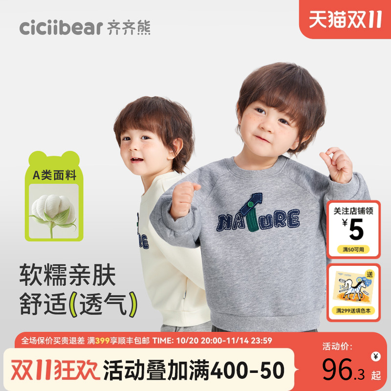 齐齐熊宝宝圆领卫衣男童春装2025新款儿童运动上衣洋气韩版童装潮