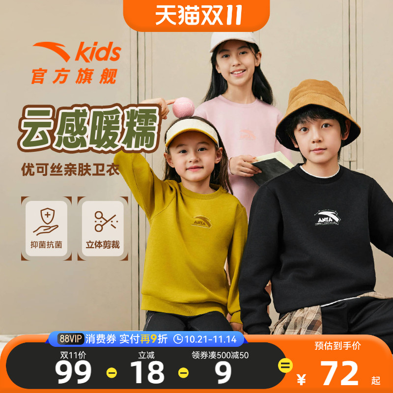 安踏儿童卫衣男童春装上衣2025春秋款大童校园百搭套头运动打底衫