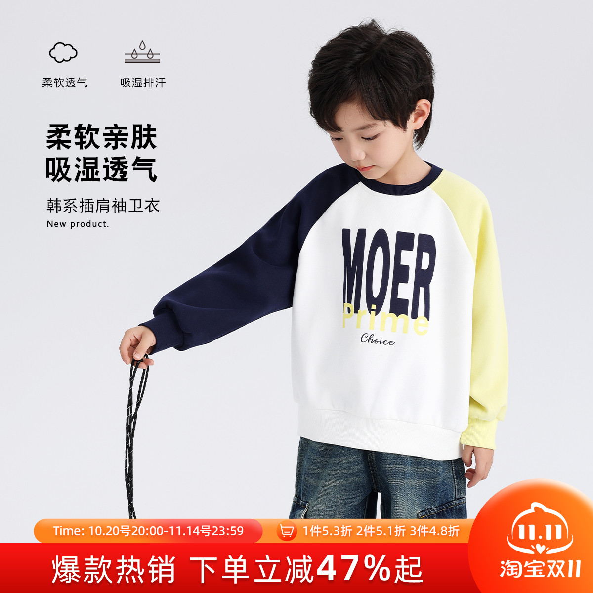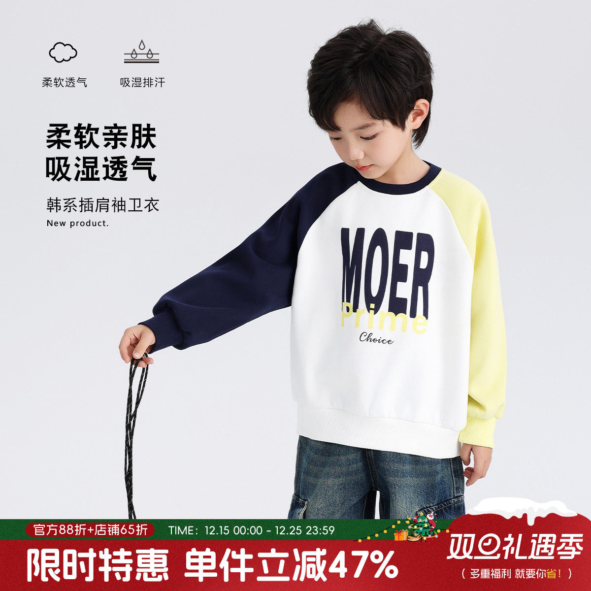 沫沫家卫衣男童春装2025新款圆领内搭长袖潮流字母撞色插肩上衣