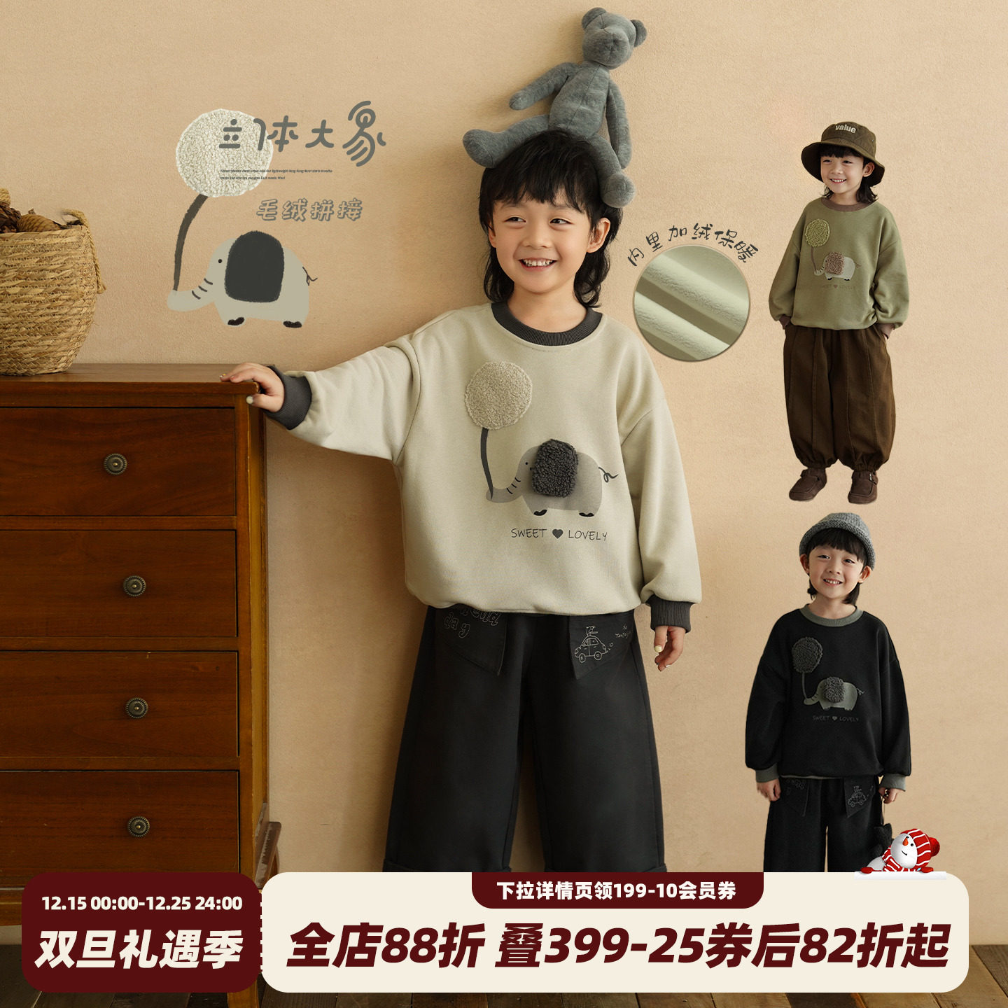 砚台家童装男童加绒卫衣冬装一体绒加厚宝宝上衣男孩春装儿童衣服