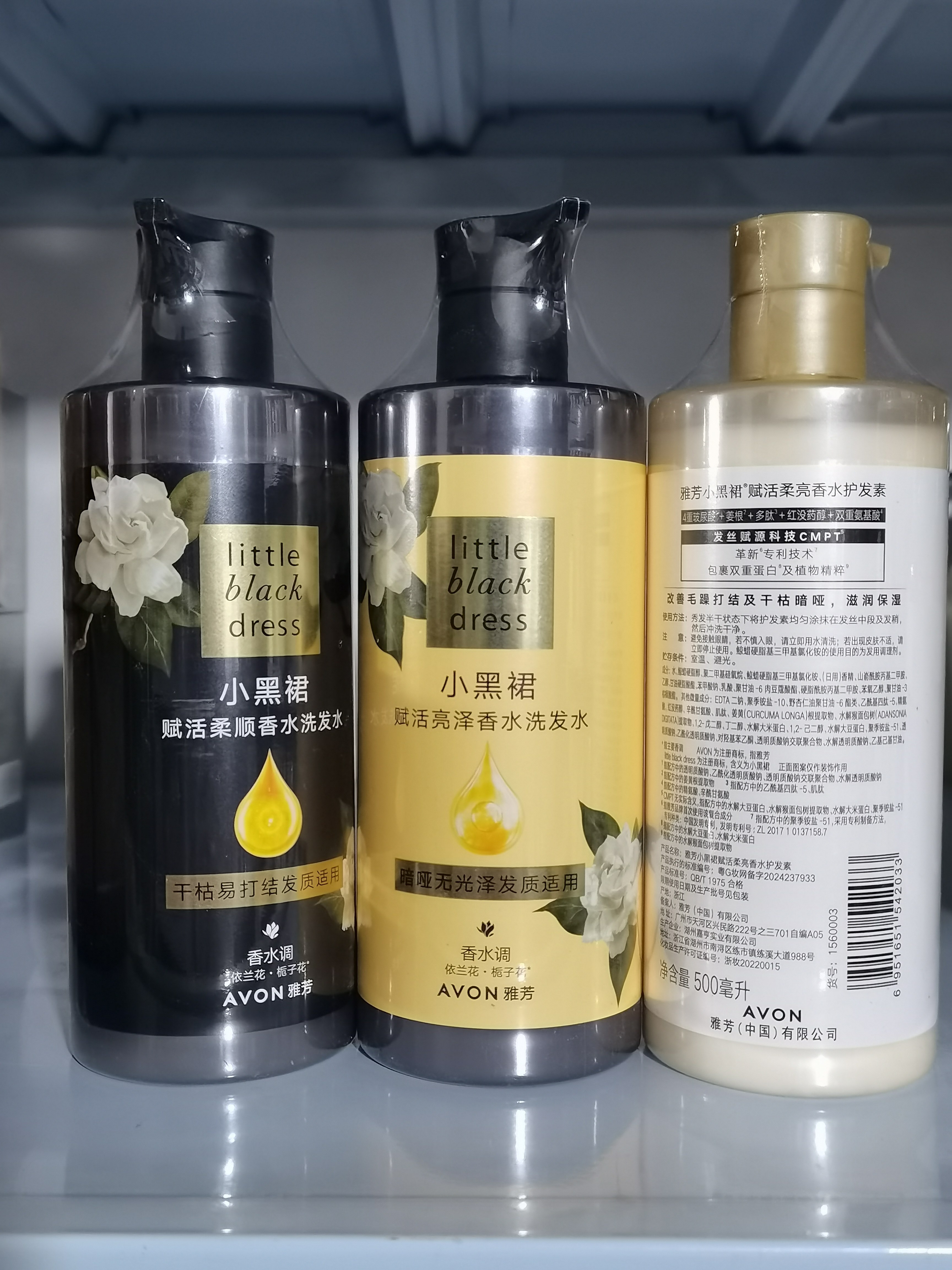 专柜正品雅芳小黑裙赋活亮泽/赋活柔顺洗发水500ml雅芳洗发水轻奢