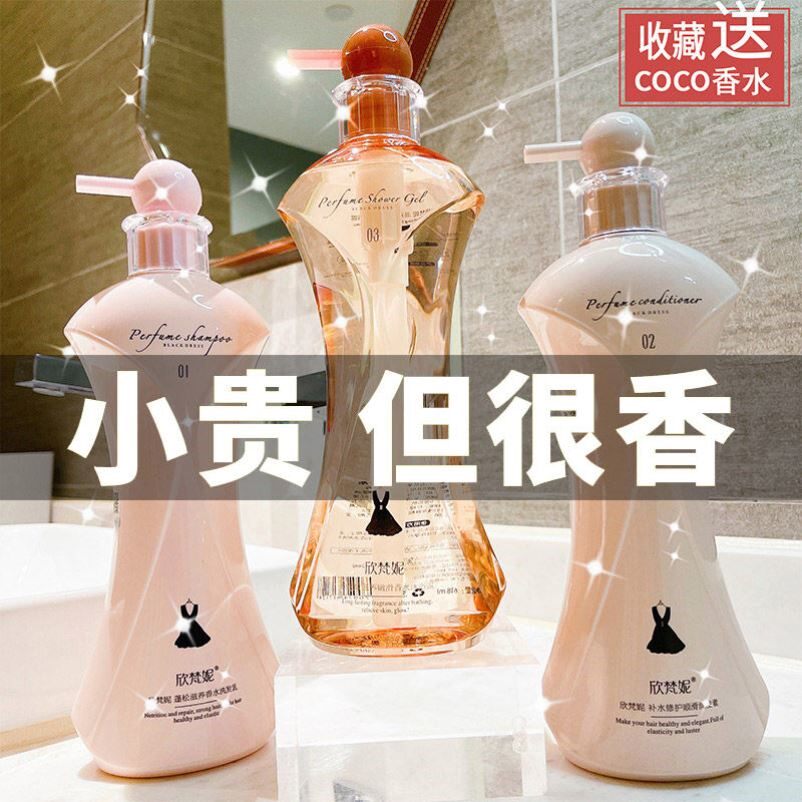 小红书小黑裙香水洗发水沐浴露护发素套装滋润蓬松去头屑止痒毛躁
