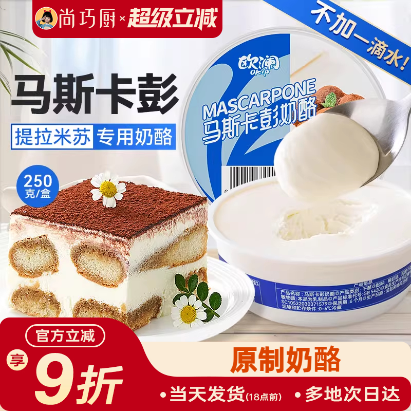 马斯卡彭琪雷萨烘焙奶酪提拉米苏奶油芝士马斯卡膨布尼材料厨盒装