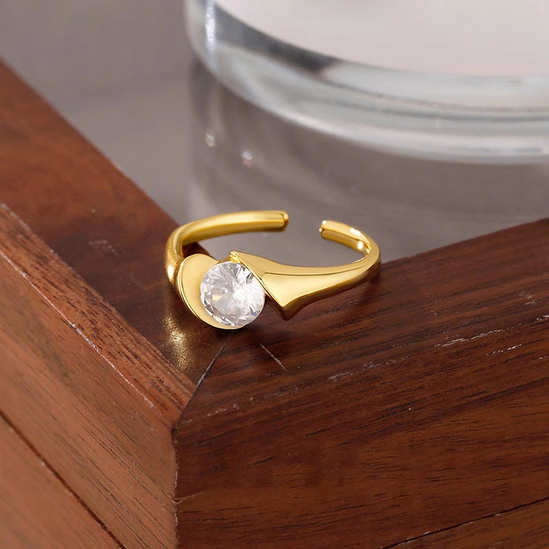 金色拉丝锆石戒指女款小众设计轻奢高级感食指戒法式开口叠戴指环