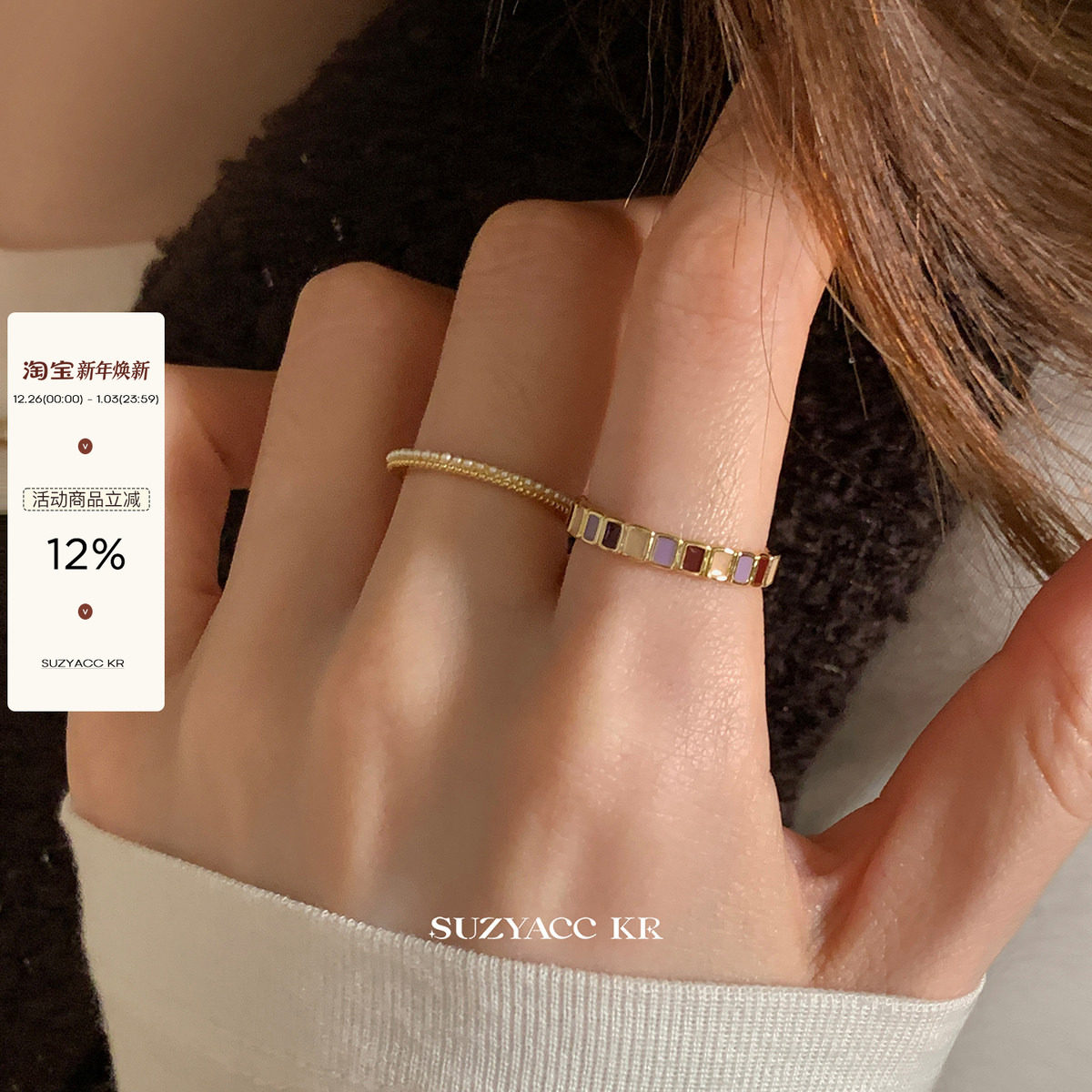 suzyacc kr焦糖香芋彩色滴釉戒指女轻奢高级感食指戒小众设计指环