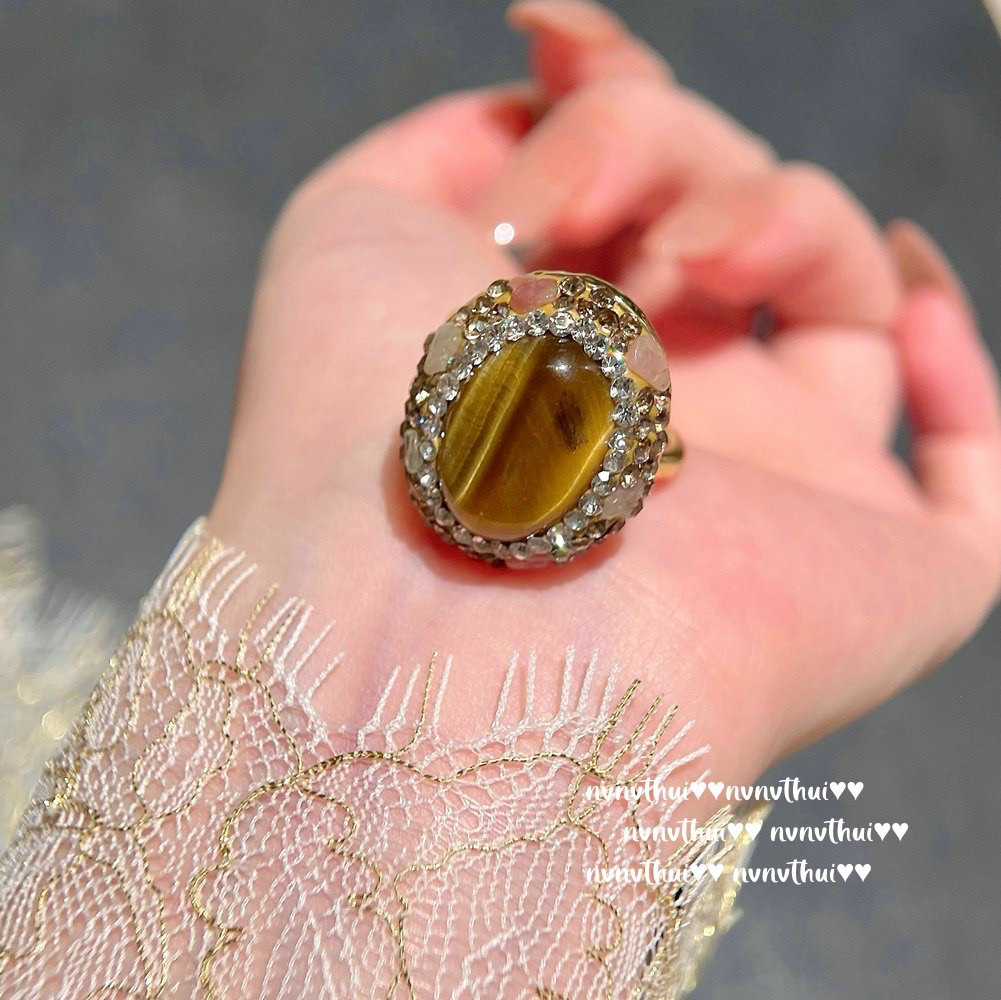 美拉德虎眼石开口戒指女款复古轻奢高级感装饰食指戒小众设计指环
