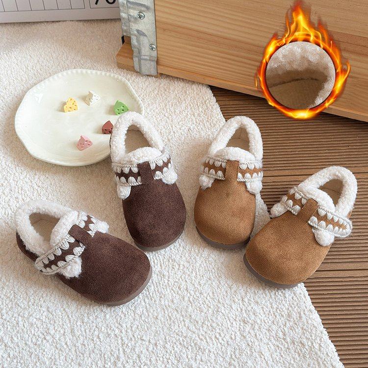 儿童毛呢料勃肯鞋女童毛毛鞋保暖棉鞋冬季韩版加绒男童软底豆豆鞋