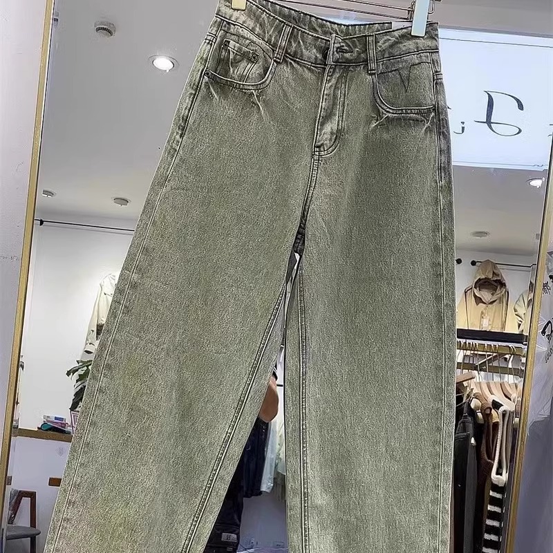 gcrues韩版显瘦哈伦牛仔裤复古女秋冬新款2024宽松直筒裤气质百搭