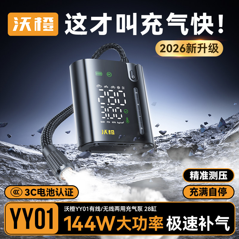 沃橙车载充气泵汽车用打气泵便携无线电动轮胎带测胎压筒搭电一体