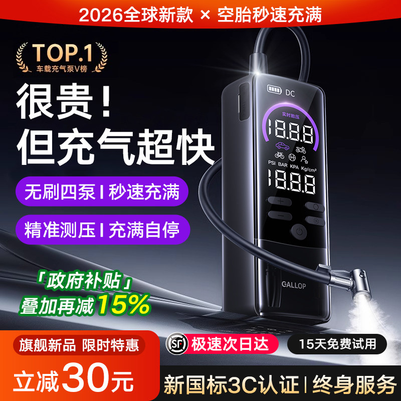 2026新款车载充气泵汽车用便携插电动打气泵胎压监测无线送延长管