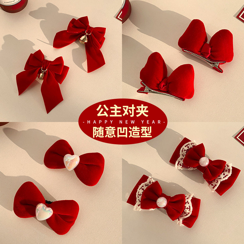 儿童蝴蝶结发饰红色小夹子女孩前额发夹女童网红宝宝公主发卡头饰