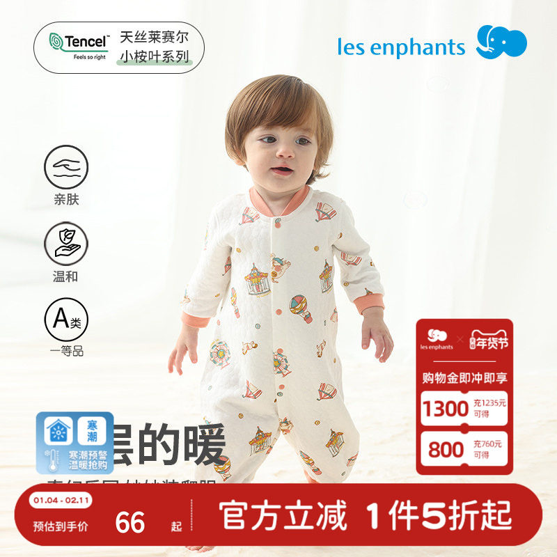 丽婴房婴儿秋冬连体衣宝宝保暖夹棉内衣新生儿哈衣天丝空气层爬服