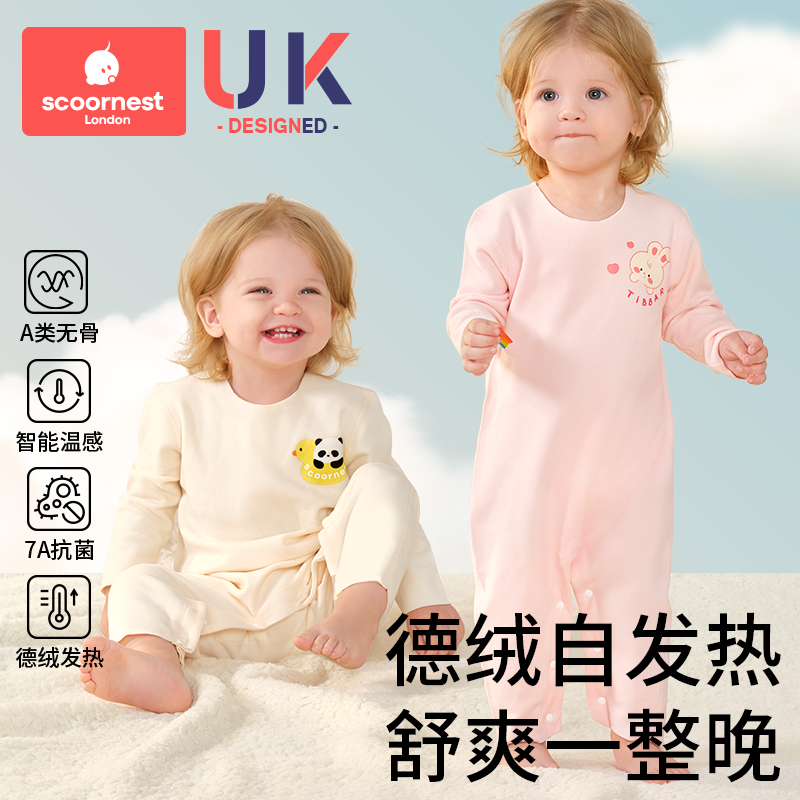 科巢德绒婴幼儿连体衣服秋冬装保暖内衣打底新生儿童宝宝新款睡衣