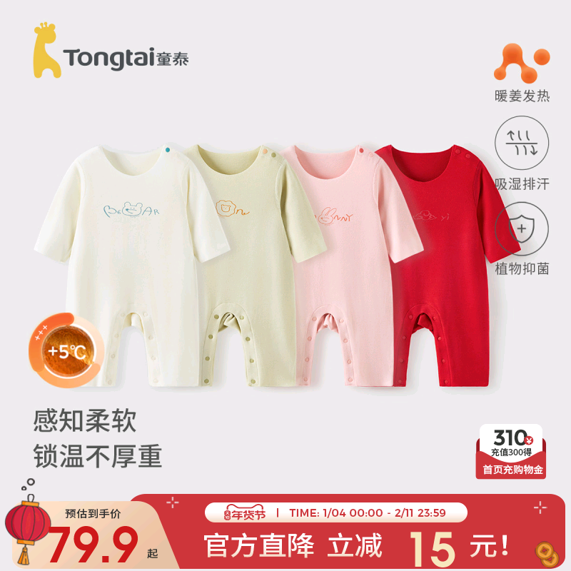 童泰婴儿连体衣秋冬暖姜发热保暖内衣男女宝宝哈衣新生儿爬服睡衣