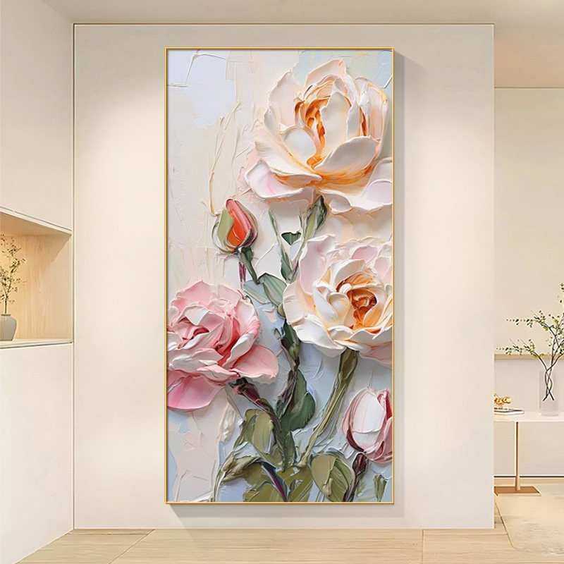 牡丹花十字绣2026年新款高级感客厅玄关治愈系奶油风竖版自己刺绣