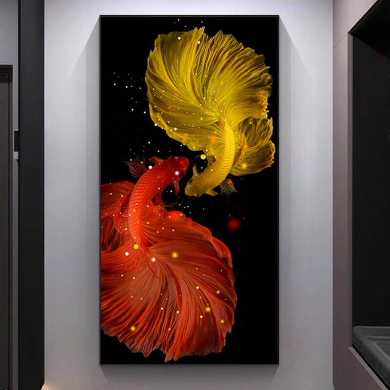5D钻石画满钻锦鲤招财玄关贴钻十字钻石绣2026新款轻奢竖版入户鱼