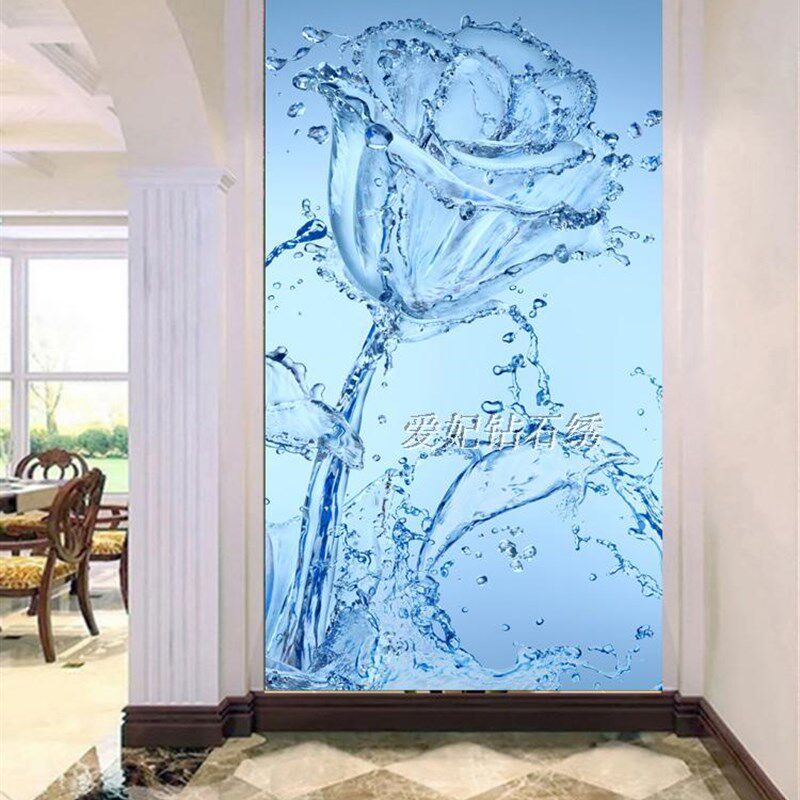 现代简约走廊5D贴砖石绣十字关钻石钻满画透明玫瑰花海豚玄绣竖版
