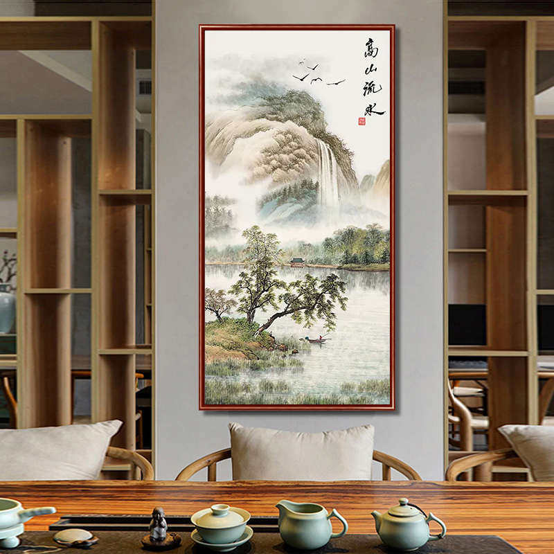 高山流水生财钻石画满钻新款2025山水风景砖石贴画走廊玄关中国风