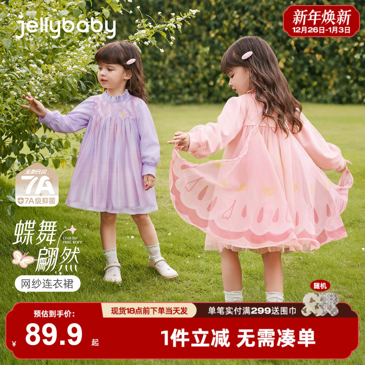 儿童蝴蝶翅膀纱裙春秋2025新款公主裙女童连衣裙粉色秋季长袖宝宝