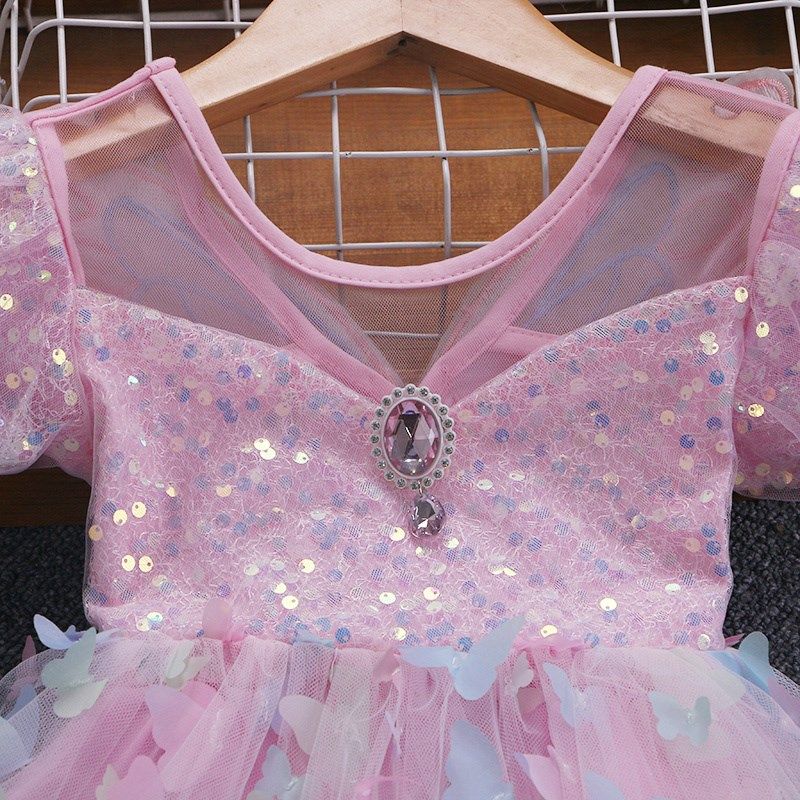 女童短袖连衣裙儿童翅膀蓬蓬裙小女孩可爱蝴蝶裙子2024夏季薄款