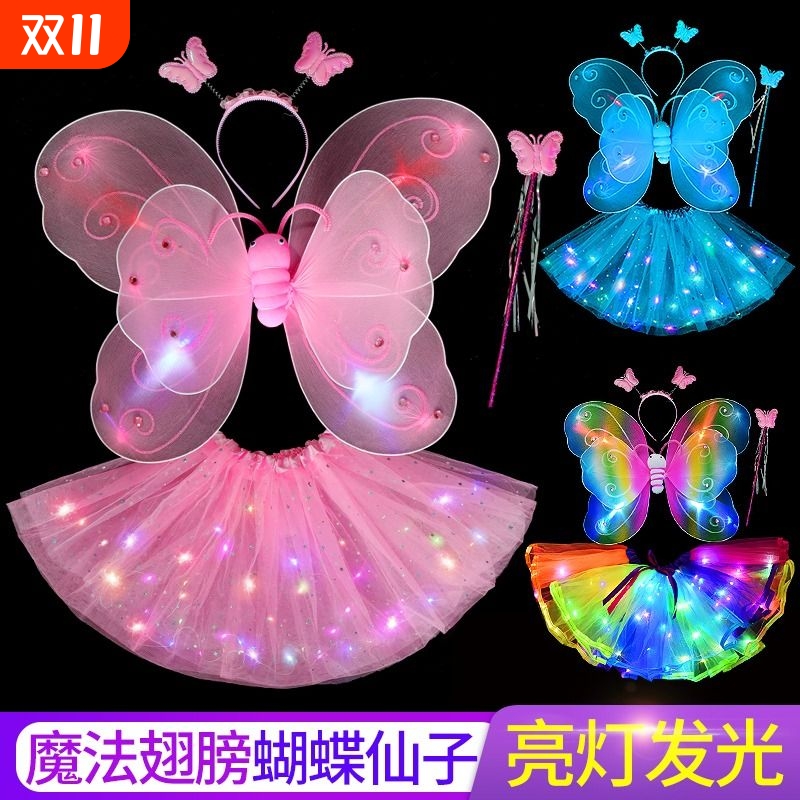 发光蝴蝶翅膀儿童背饰天使小女孩女童公主魔法棒礼物仙女裙演出服