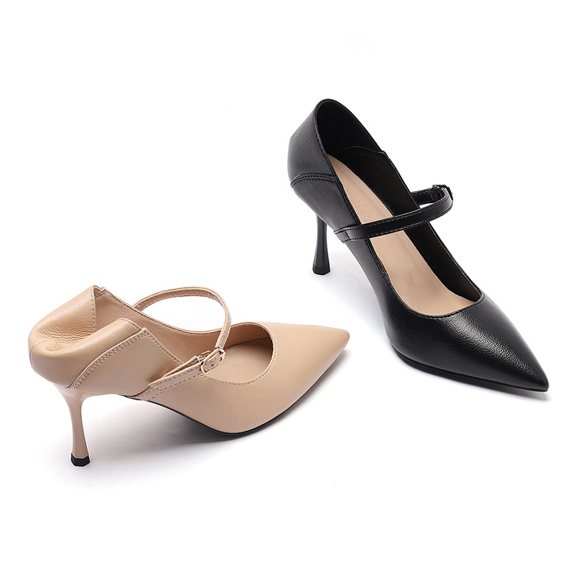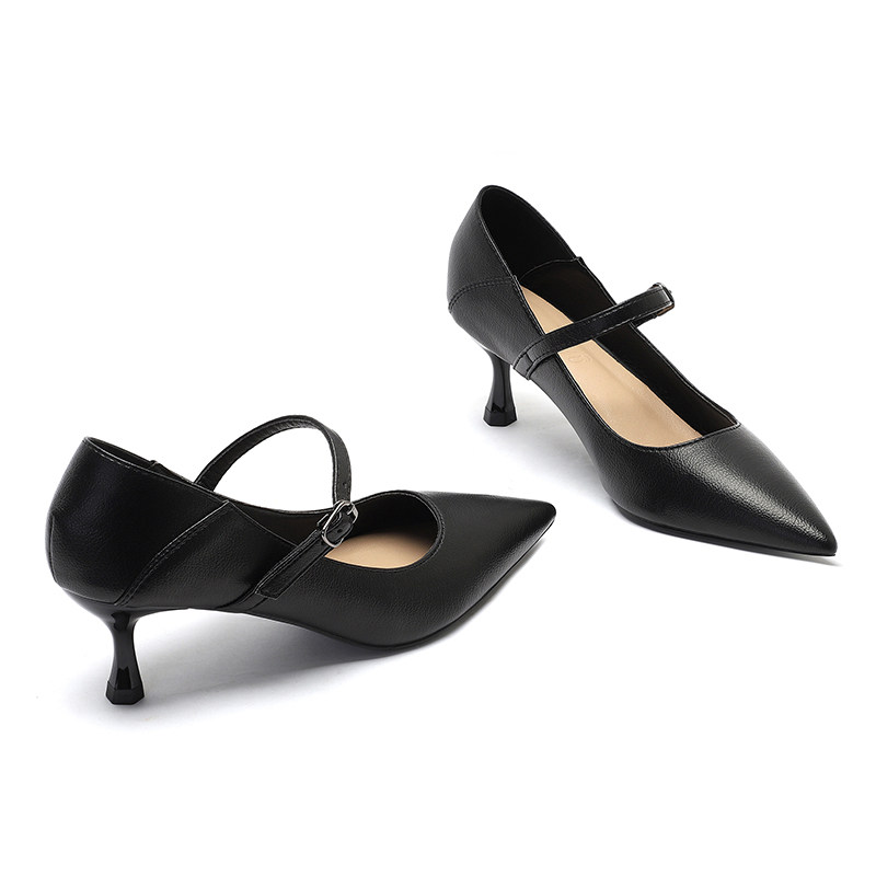 - 高跟鞋细跟单鞋一字扣