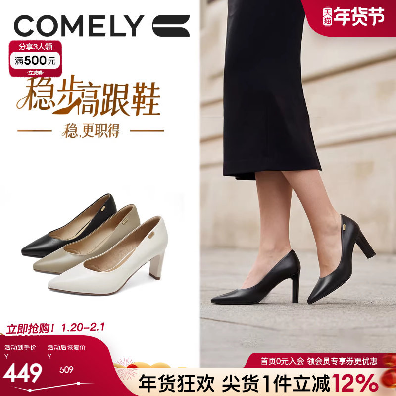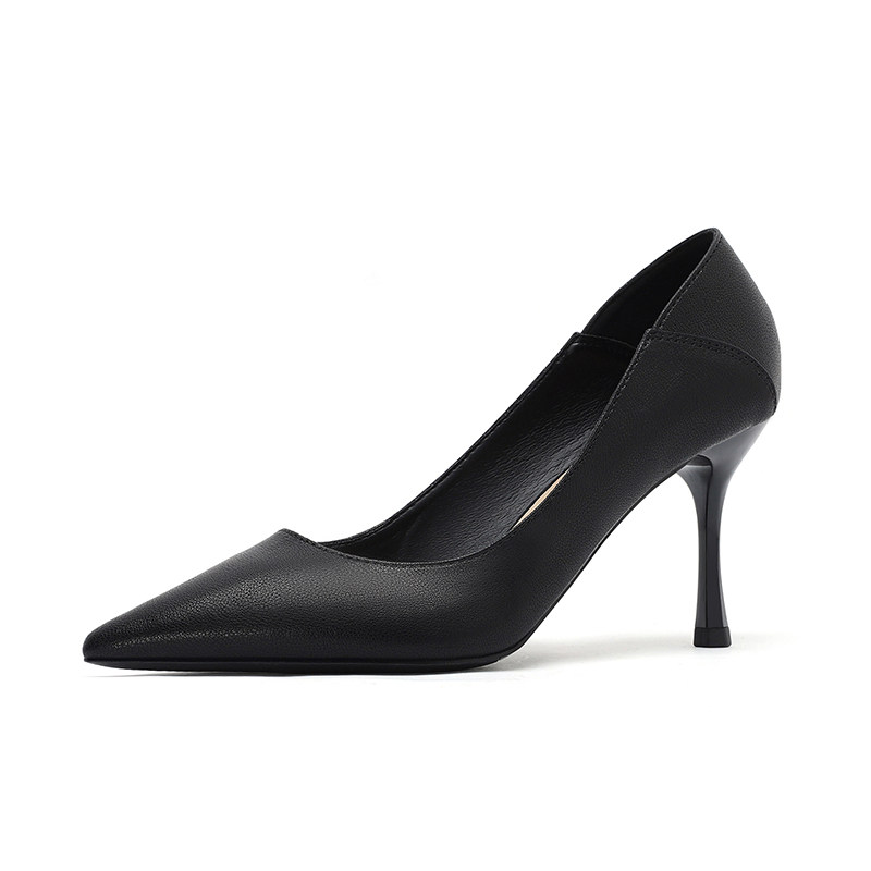 Cozyroom真皮黑色高跟鞋女2025新款职业7cm气质软皮尖头细跟5cm不