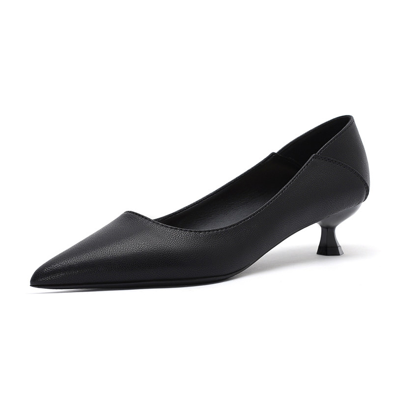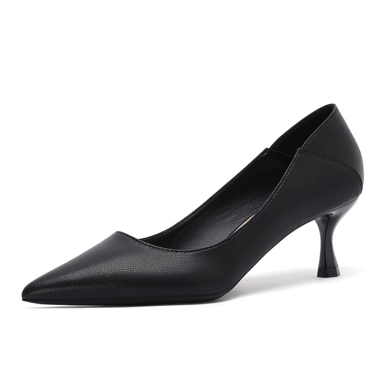 高跟鞋细跟2025年新款春秋百搭职业真皮尖头单鞋气质工作鞋女黑色