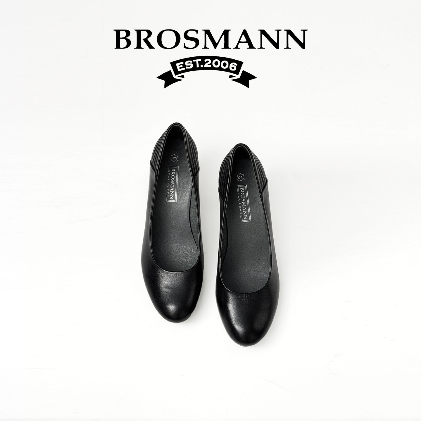 BROSMANN/宝舒曼2026新款女士真皮黑色高跟鞋职业粗跟单鞋妈妈鞋