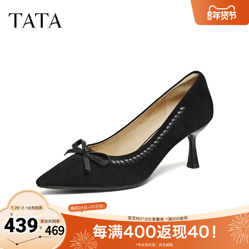 TATA他她尖头高跟鞋女真皮黑色高跟鞋气质单鞋女2026新款UZG01AQ6