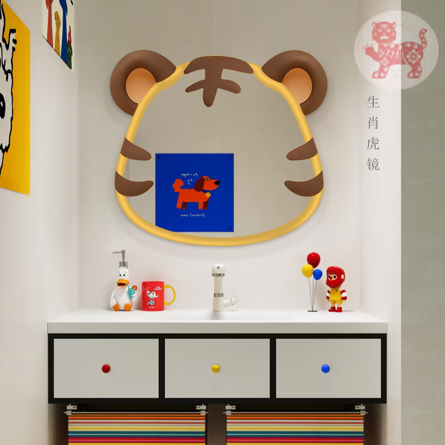 可爱生肖老虎创意镜子洗手间智能卫浴镜简约不规则艺术壁挂装饰镜