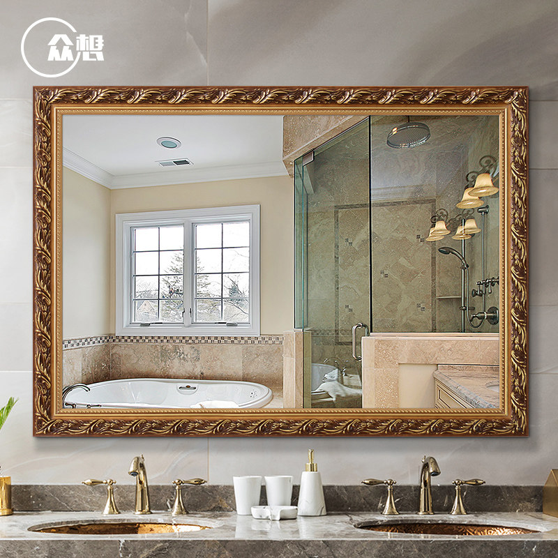 众想欧式复古浴室镜实木卫生间镜子壁挂装饰镜卫浴镜洗手间大镜子
