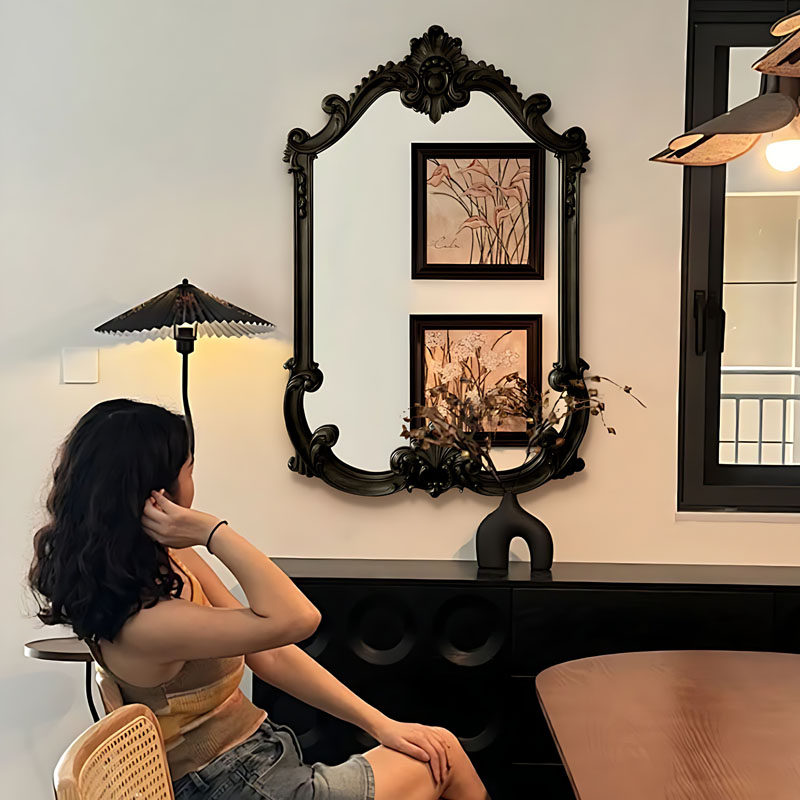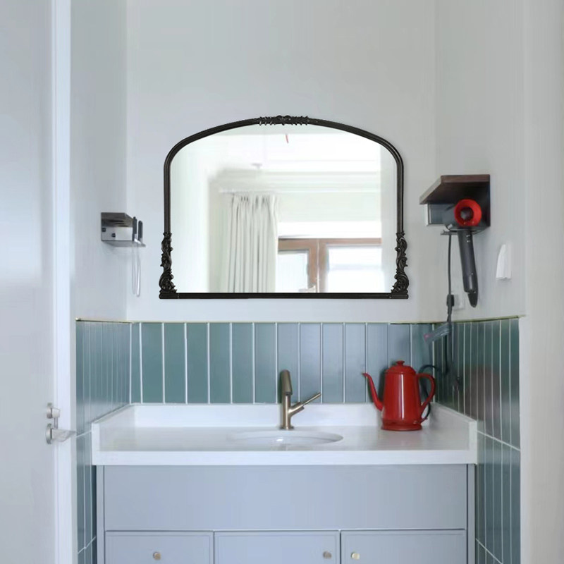 法式中古卫生间镜子智能挂墙化妆镜复古家用浴室镜异形壁挂装饰镜