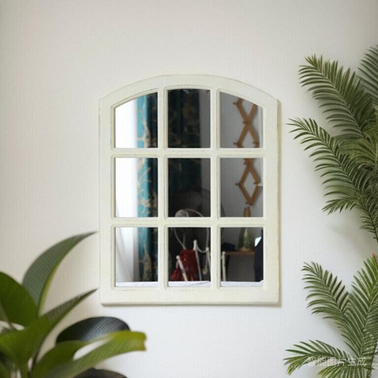 法式复古做旧实木假窗镜壁挂装饰镜子客厅餐厅玄关卧室背景墙挂件