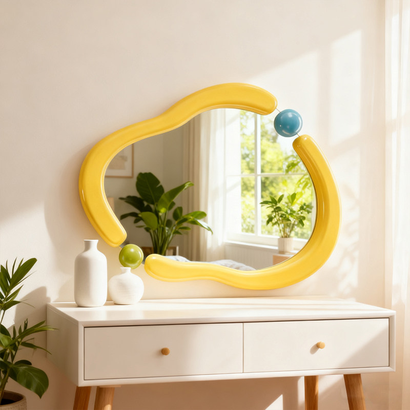 奶油风不规则智能浴室镜设计艺术壁挂装饰镜卧室梳妆台异形化妆镜