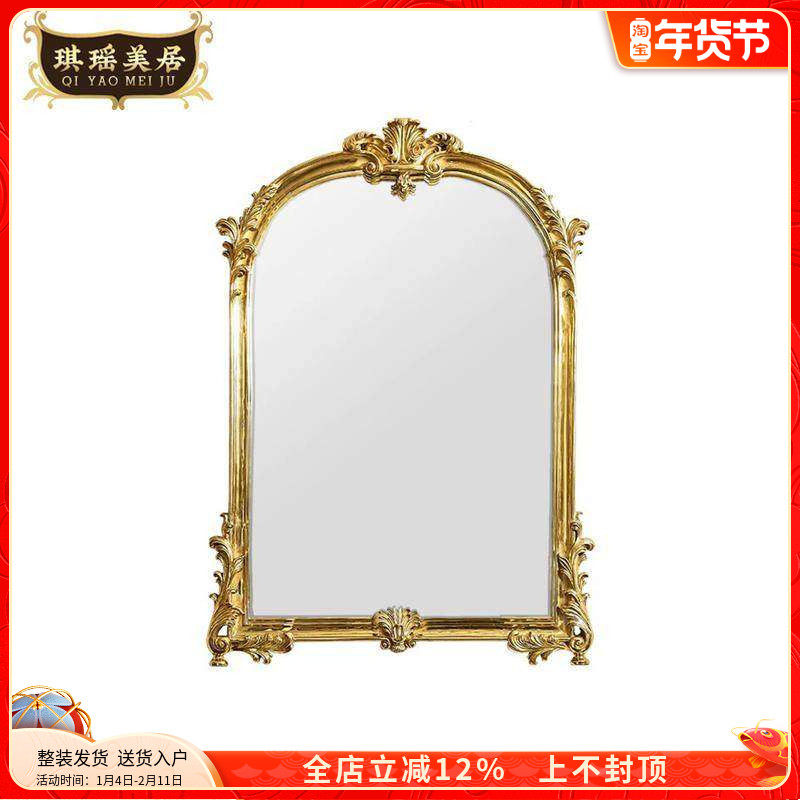 琪瑶家居法式奢华别墅手工雕刻黄铜玄关挂镜欧式壁炉壁挂装饰镜子