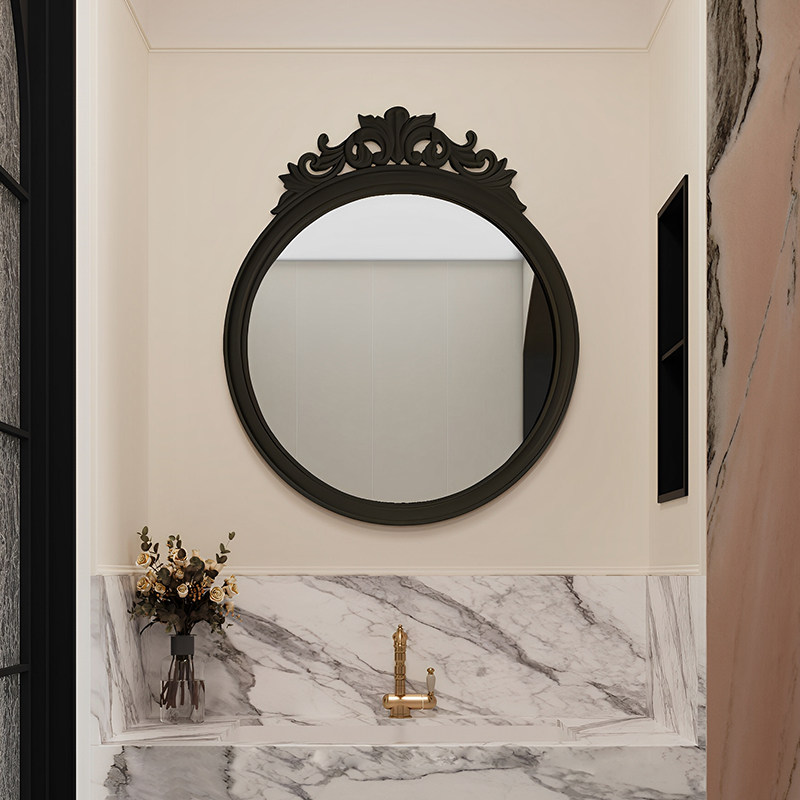 轻奢圆形雕花化妆镜法式洗漱台高清led智能浴室镜酒店壁挂装饰镜