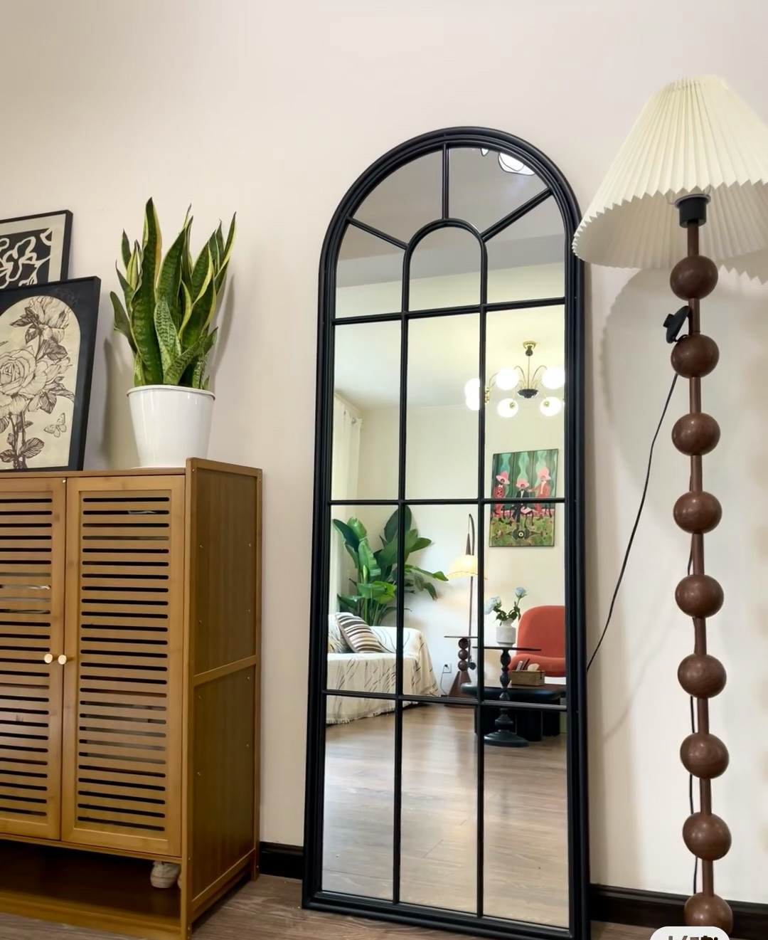 法式复古铁艺壁挂装饰镜玄关挂墙客餐厅镜假窗户落地全身穿衣镜子