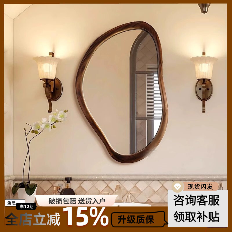 高级不规则侘寂风浴室镜异形创意壁挂装饰镜北欧设计感艺术梳妆镜