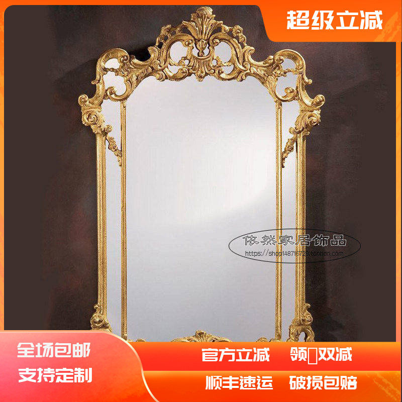 法式复古镜雕花镜玄关壁挂装饰镜家用卧室浴室镜梳妆壁炉上方镜子