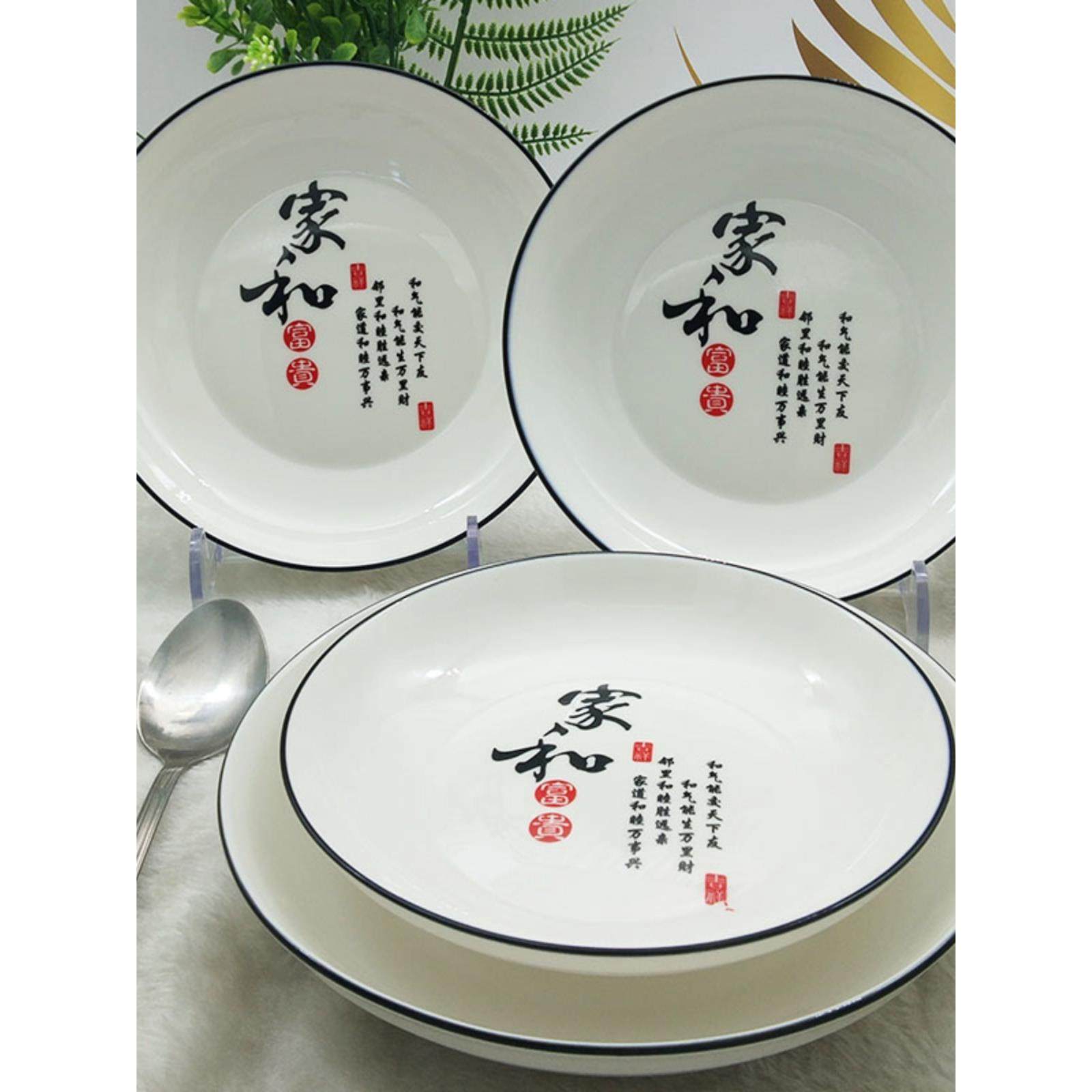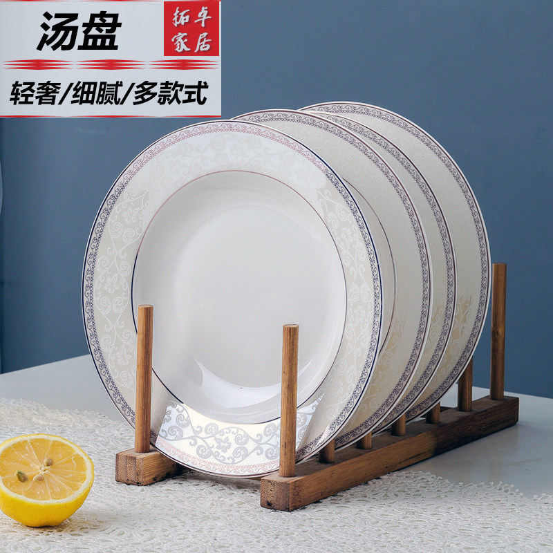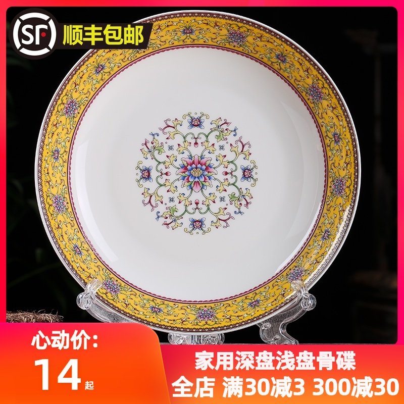 景德镇盘子菜盘家用陶瓷炒菜碟子餐具中式深盘简约圆形碟汤盘饭盘