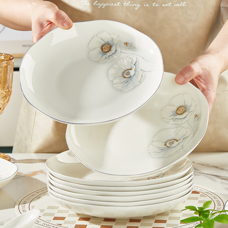 景德镇盘子菜盘家用2025新款炒菜盘餐具骨瓷碟子组合碗碟套装汤盘