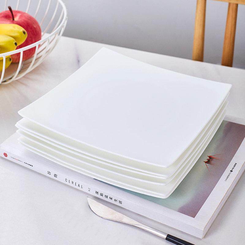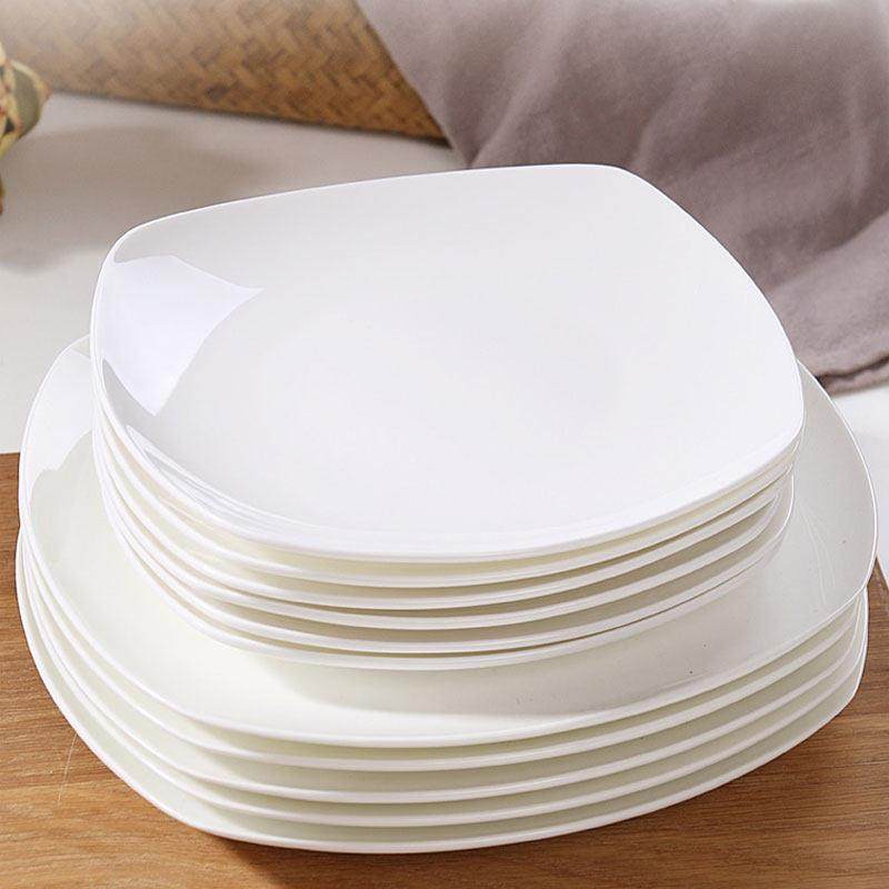 景德镇盘子菜盘套装家用纯白色骨瓷方形碟子炒菜盘子陶瓷平盘日式