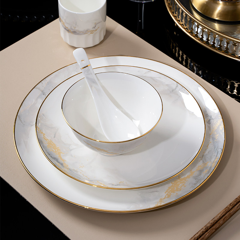 2025新款碗碟套装家用轻奢金边景德镇盘子筷骨瓷餐具套装碗盘乔迁