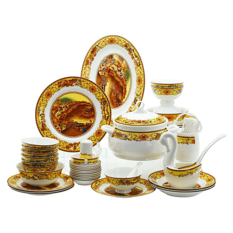 景德镇官方陶瓷釉下高温中式家用新款面碗汤碗饭碗盘乔迁餐具套装