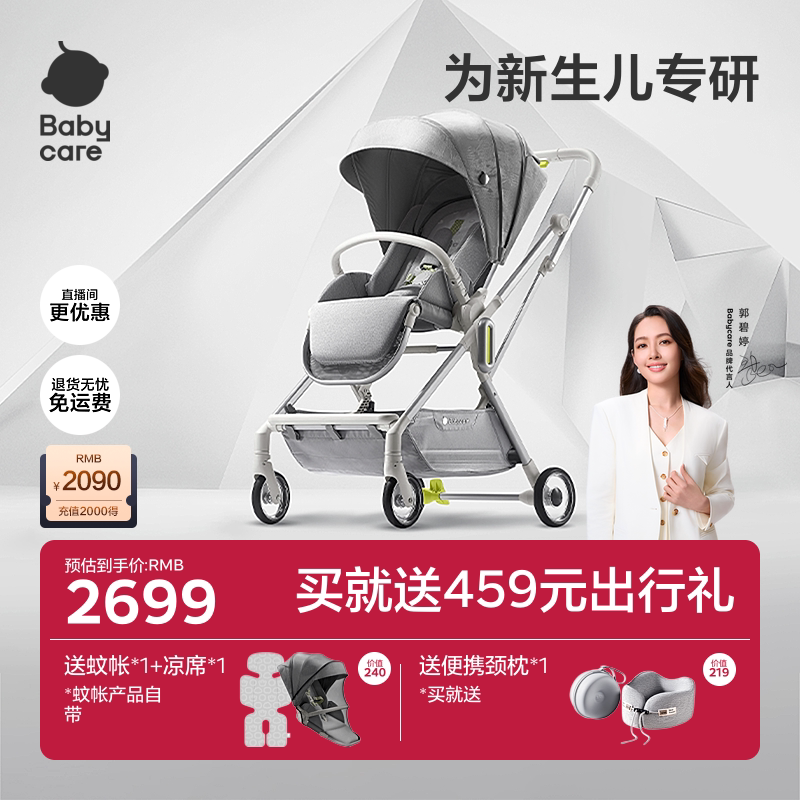babycare稳稳舱新生儿双向轻便折叠婴儿推车便携可坐躺四轮手推车