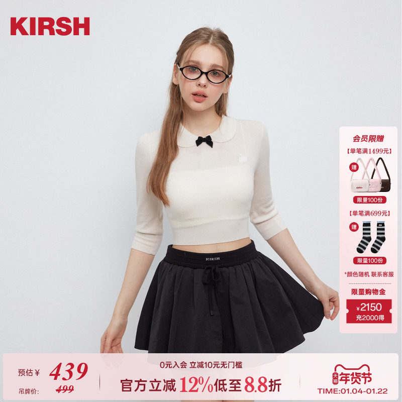 【张慧雯同款】樱桃KIRSH 娃娃领七分袖针织衫女25夏季蝴蝶结短袖