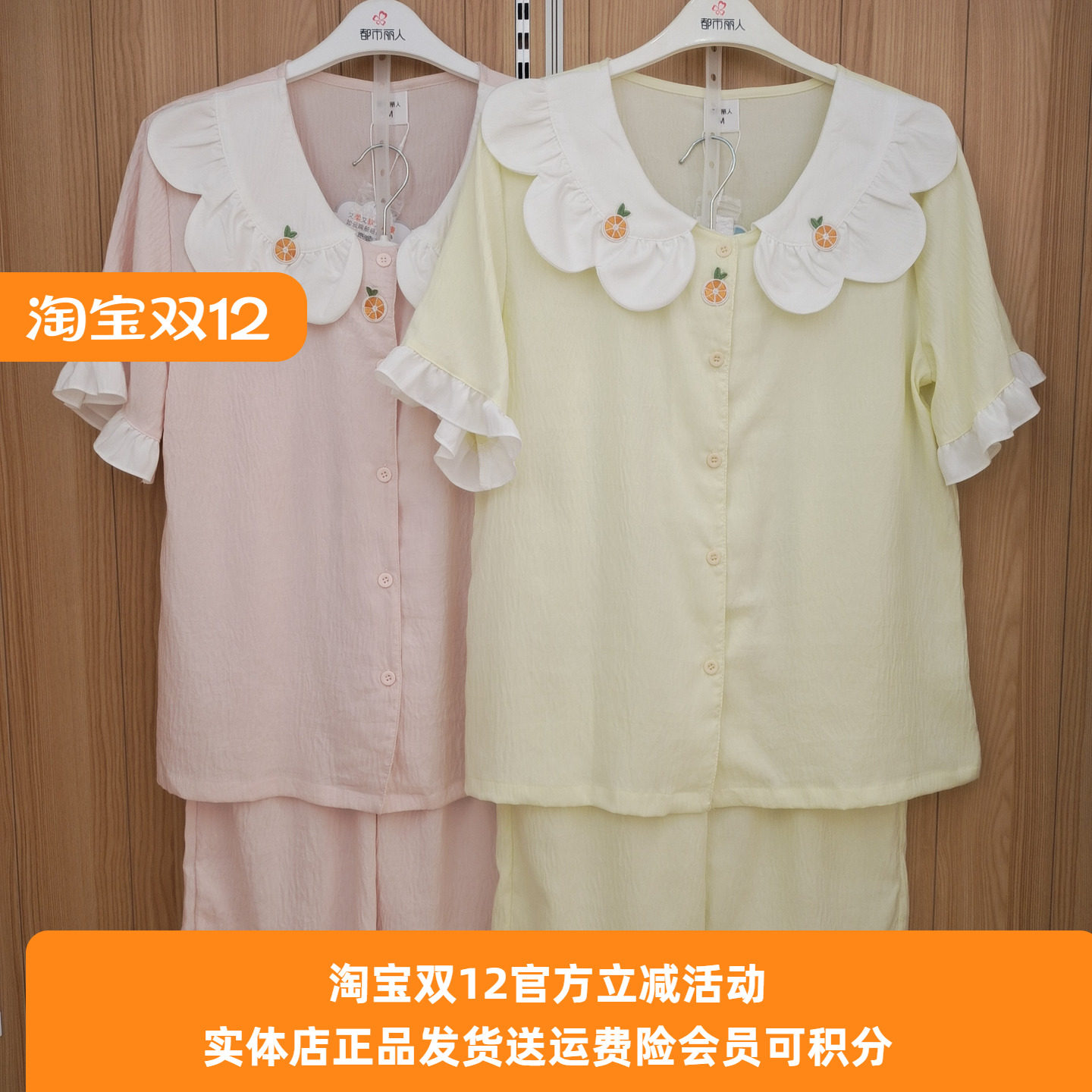 都市丽人新LH41D4女娃娃领棉绸轻薄开衫短袖七分裤减龄睡衣家居服