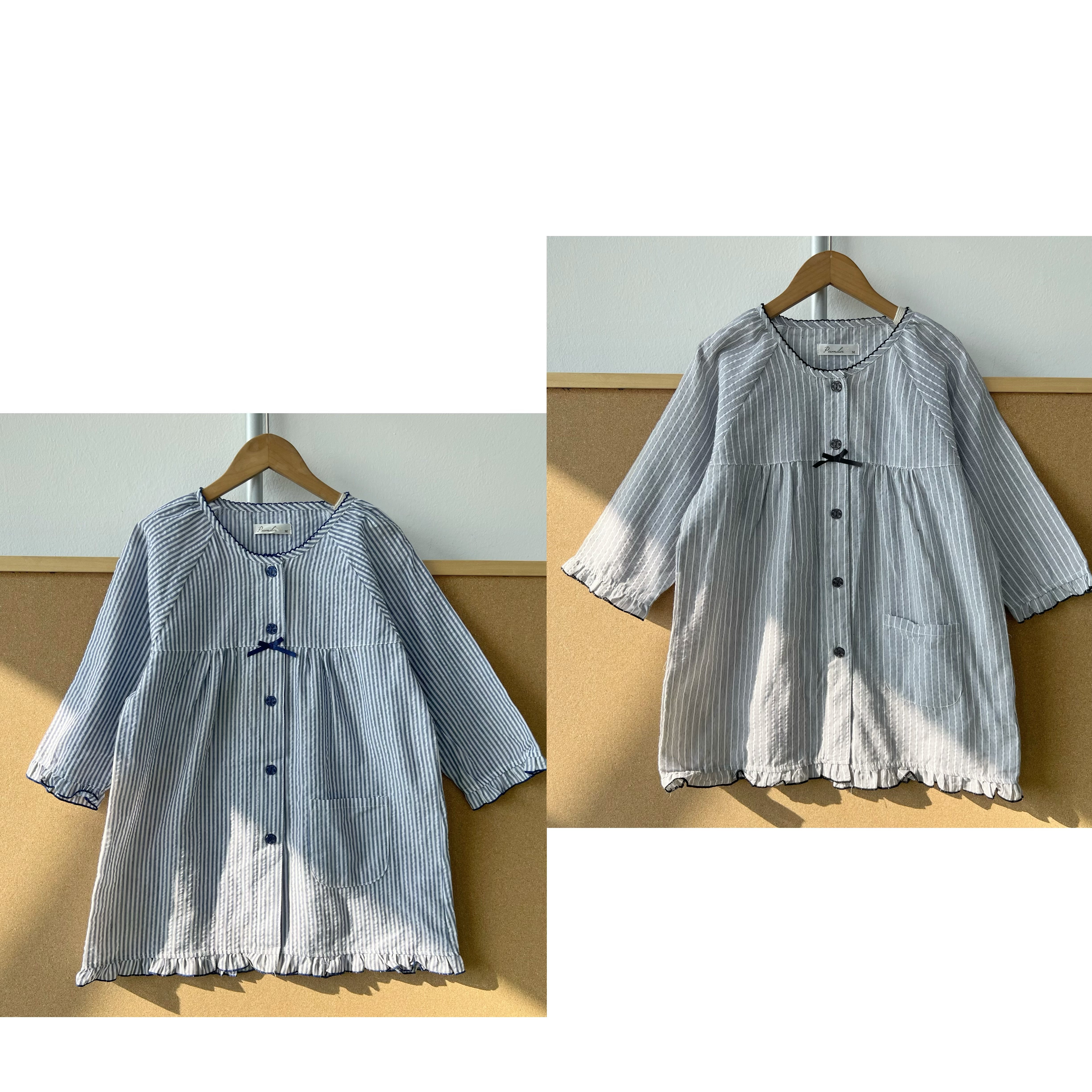 南9-26韩系清新条纹娃娃衫七分袖遮肉显瘦居家外出衬衫上衣H25-12