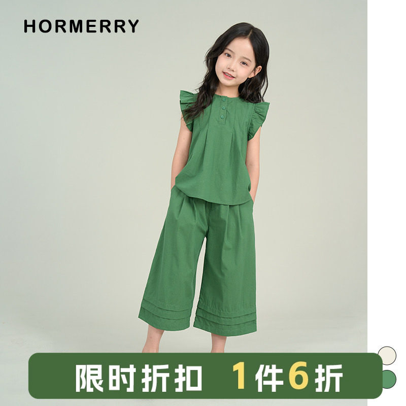 赫米童装2025夏季日系小飞袖套装女童宽松娃娃衫七分裤短裤两件套